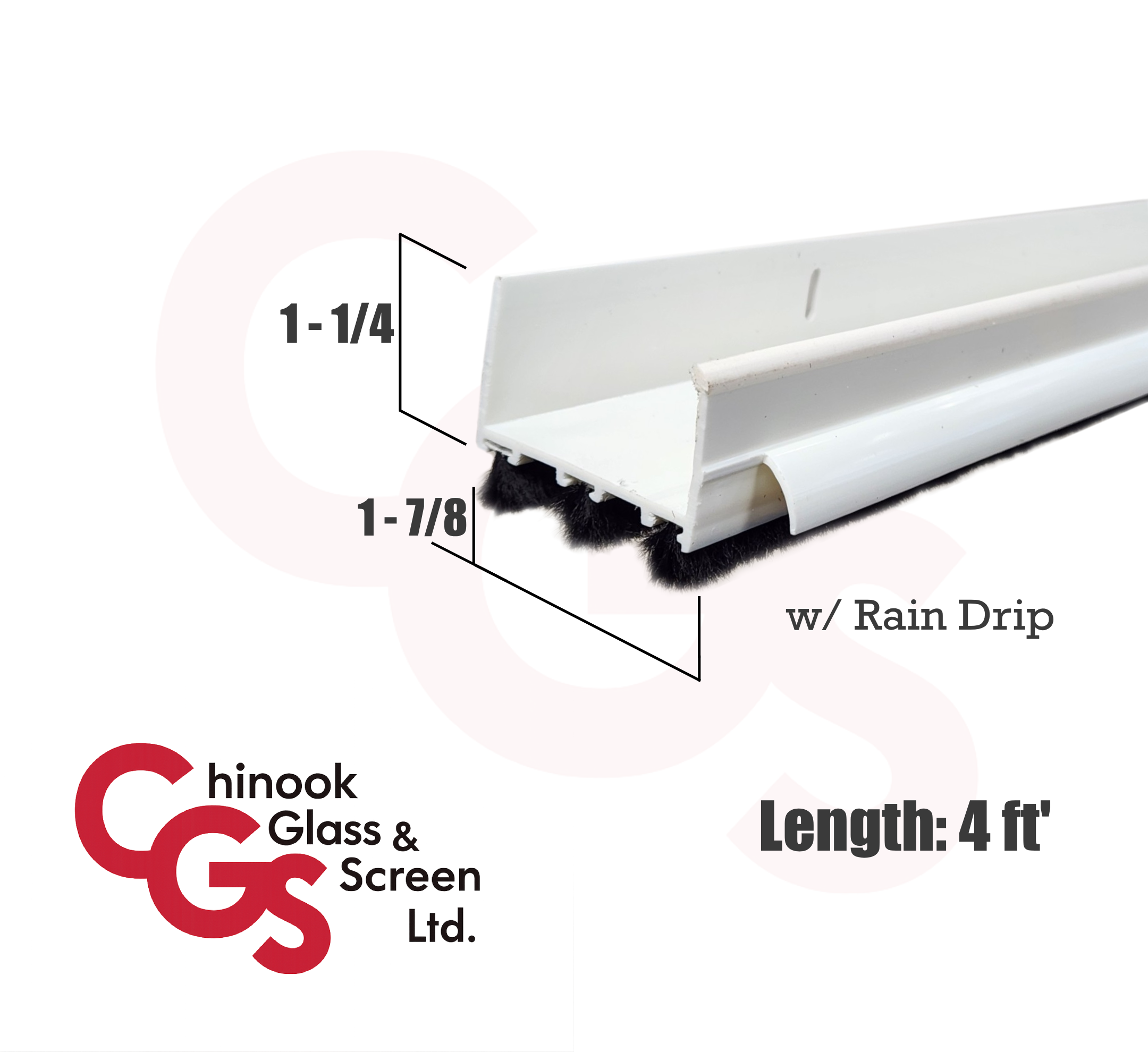 48″ Door Shoe with Pile (Mohair) Fin & Rain Drip (White)