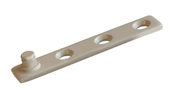 Truth hardware dyad stud bracket has a grooved attachment stud, no ring. The bracket mounts to the bottom of the window sash for attachment to the short dyad arm on casement window operators. This truth hardware stud bracket is non handed and is used by several window manufacturers. Part# 17c072-b,with ring, weather resistant coating.